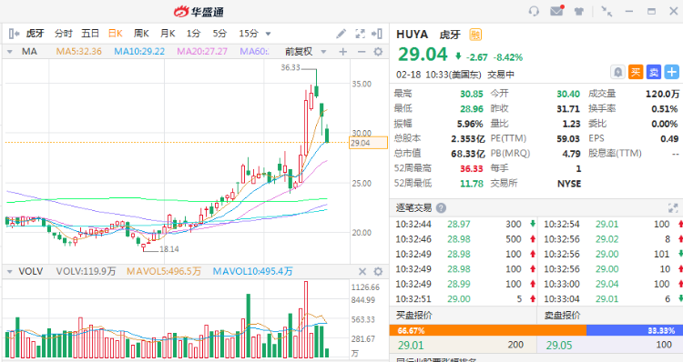 华盛资讯2月18日晚间消息,热门中概股普跌,截至发稿,虎牙(HUYA.N)、跟谁学(GSX.N)、小鹏汽车(XPEV.N)跌近8%。