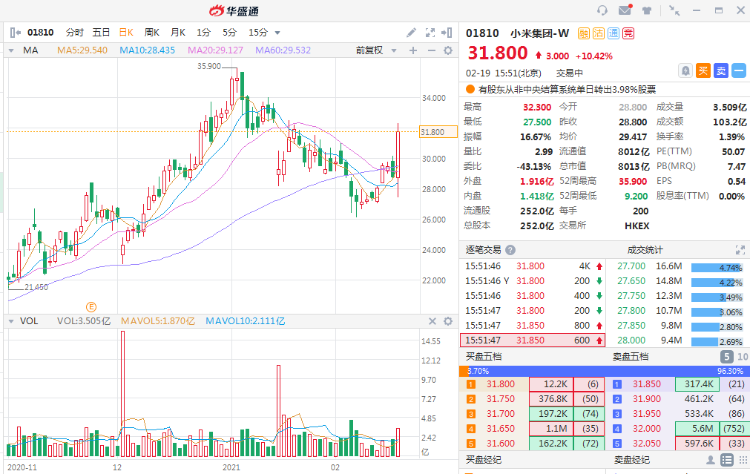 据媒体报道,小米已确定造车,并视其为战略级决策,不过具体形式和路径还未确定,或许仍有变数。一位知情人士称,小米造车或将由小米集团创始人雷军亲自带队。受次消息影响,小米尾盘暴拉,截至目前,小米集团涨超10%,市值重新返回8000亿港元大关,市值瞬间增逾700亿港元。