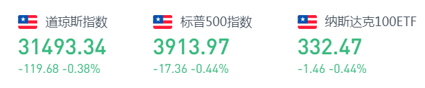美国申请失业救济人数逊色,美股周四下跌。截止收盘,道琼斯指数跌119.68点,跌幅0.38%,报31493.34点;标普500指数跌0.44%,报3913.97点;纳斯达克综合指数跌100.14点,跌幅0.72%,报13865.36点。