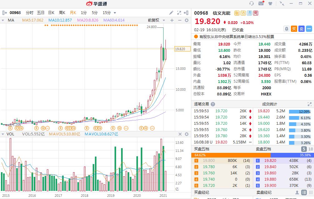 集团投资的地面建设及分布式电站累计已超过3.3GW,年发电量达到37亿Kw.h。可造到节约标准煤106万吨、减排碳粉尘约13.8万吨、减排CO2约290万吨,和减排SO2约69万吨。年内受到疫情全国爆发,部分地区的封城,更直接影响整体业务。唯左第二季已逐步回复正常。集团将快速下降成本,以减少依靠政府的补贴。面对越来越多的平价上网、电网接入、购电合约及电力市场改革等挑战,集团唯有大幅削减成本,以面对直接竞争。可于现价19.82附近吸纳,中长线可见27元,跌穿17.30元止蚀。