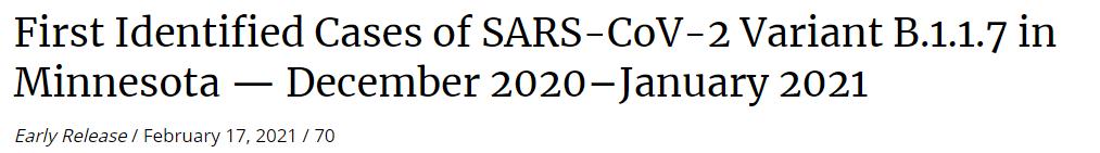 CDC还发布了一份与明尼苏达州卫生部门共同完成的最新研究报告,报告对该州8名感染了在英国发现的新冠病毒变异株的病例进行了分析。在这8人中,3人在发病前两周有国际旅行史,3人去过加利福尼亚州,1人在家中感染病毒,1人在社区感染病毒——但他们都没有去过英国。