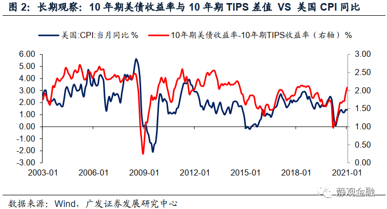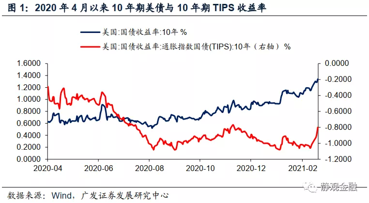 我们在2019年9月14日报告《美债分析框架及美债走势归因分析》中指出10年期美债的影响因素包括:经济因素与非经济因素,前者又可以拆解成增长因素与通胀因素、后者又可以拆解成配置需求与避险需求。今年以来令10年期美债收益率加速上扬的原因比较复杂,比如市场对于联储12月议息会议纪要中提到经济恢复后削减QE的理解(参考报告《10Y美债收益率破1%释放怎样的信号?》)、疫苗接种速率的波动以及通胀预期等。但是回顾去年11月以来10年期美债与10年期TIPS的走势可知,推升10年期美债收益率的主因来自通胀因素,更确切地说是通胀预期。