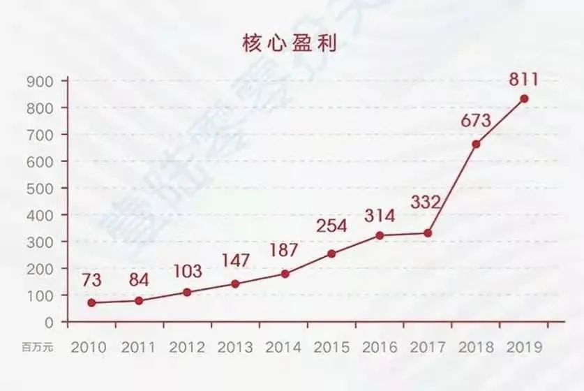 于2010至2019年间,营收和核心盈利的年均复合年增长率分别达到40%和30%以上,维持着高速增长以及媲美行业第一梯队的佳绩。