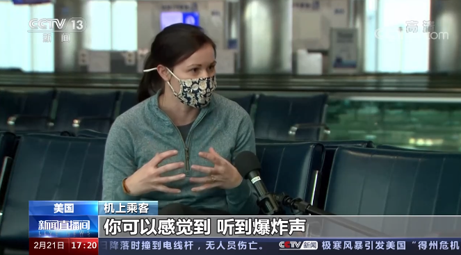 机上乘客 布伦达·德恩:刚开始一切都很好,突然,传出很大一声爆炸声。你可以听到爆炸声,然后我们就开始发抖,我们就坐在机翼的位置,我向舷窗外看,看到有烟。我能看到有东西(残骸)向我飞过来,我的女儿就坐在舷窗旁边,她很害怕。我让她不要往外看。我们只是握紧双手祈祷平安,飞机一直在抖动,在降落过程中一直在抖动。