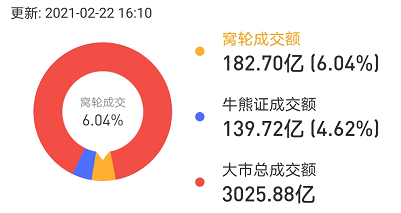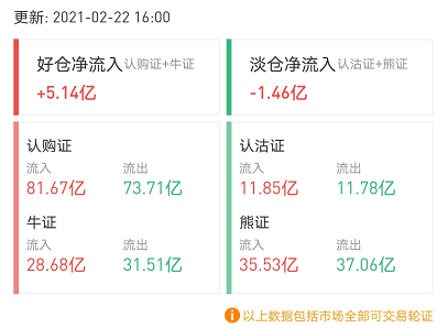 其中,窝轮总成交182.7亿港元,牛熊证总成交139.72亿港元。