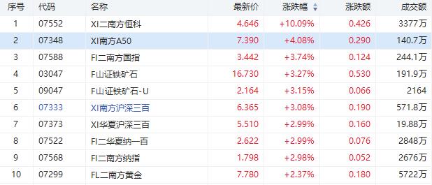 港股市场涨幅前十ETF
