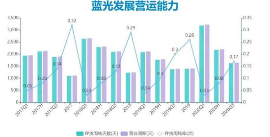 财务上明显的变化是,2020年已经公布财报中,蓝光存货周转率或营业周期都有所变慢。