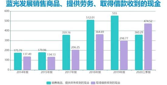 2020年第三季度,蓝光通过借款收到的现金达到474.52亿元,创下历史新高,较2019年同期大幅增长42.62%,净额增长141.81亿元。