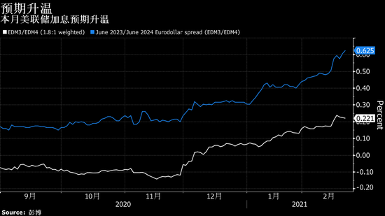 市场定价显示,随着通货再膨胀乐观情绪的升温,交易员对美联储加息时间的预期有所提前。