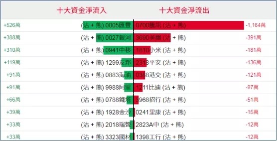 淡仓(认沽证及熊证)方面,周一个股相关淡仓流入资金规模较小;腾讯相关淡仓录得约1164万港元资金净流出套现。