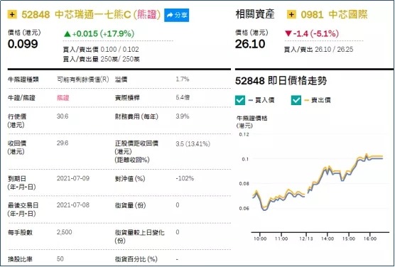 1、强势轮证:中芯瑞通一七熊(52848.HK),周一上涨17.9%;