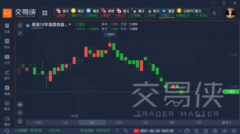 而10年期美债收益率飙升的势头有所收敛,目前已回落至1.36%下方。