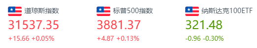 截至收盘,道琼斯指数涨0.05%,报31537.35点;标普500指数涨0.06%,报3879.00点;纳斯达克综合指数跌0.50%,报13465.20点。