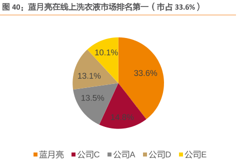蓝月亮品牌定位中高端,同等档次产品价格高于竞品10%至30%。公司过去多年集中做大单一品牌势能,同行多布局多个细分品牌。