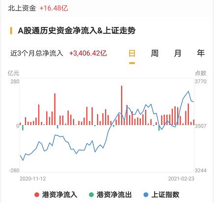 北上资金今日净流入16.48亿元,较昨日下滑15.92亿元。