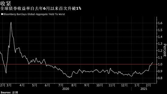 总体上来看,包括投资级主权和公司债的彭博巴克莱全球综合收益率指数今年以来上涨了20个基点。2020年则下跌了62个基点。