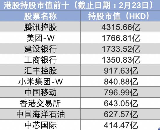 这几只股票都是南下资金港股持股市值排名靠前的股票(见下图)。