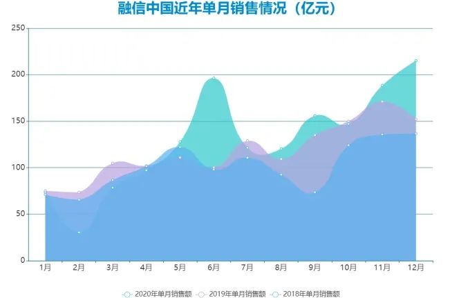 具体到单月,除了2月和12月之外,融信每月的业绩表现颇为平均,5月之后都保持在百亿以上。