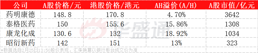 由于有A股价格锚定,所以我们直接对比这四家公司的AH溢价。