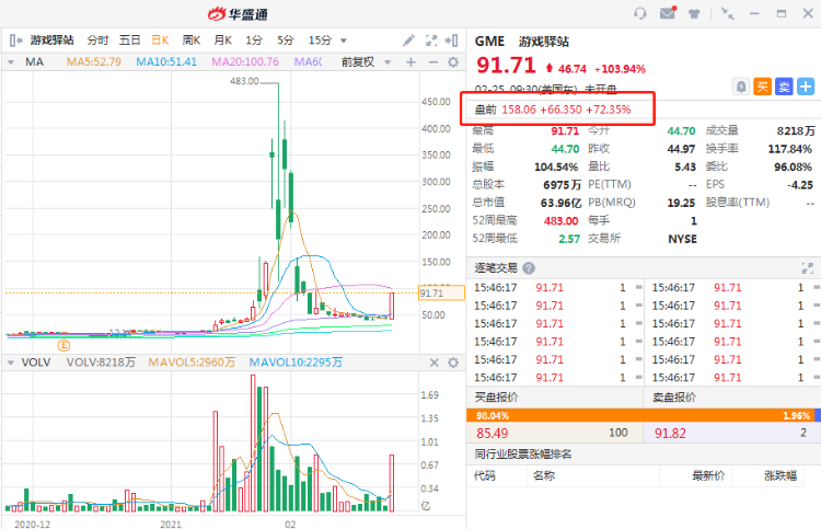 华盛资讯2月25日消息,美股盘前,WSB概念股盘前大涨。其中高斯电子(KOSS)涨超75%,游戏驿站(GME)涨超72%,AMC院线(AMC)涨近30%,Express(EXPR)涨超36%,黑莓(BB)涨超12%。