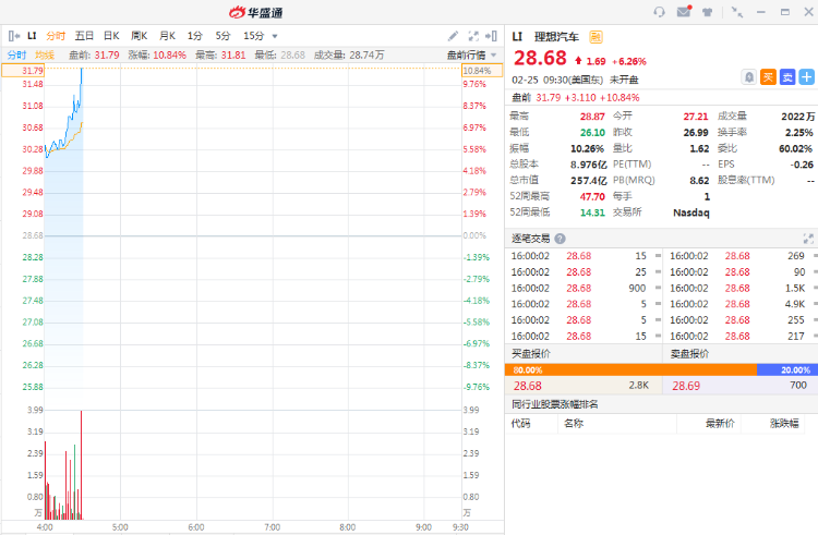 新浪科技讯 2月25日下午消息,理想汽车盘前涨10%,财报显示理想汽车四季度总营收41.47亿元,环比增长65.2%;净利润1.08亿元,上一季度为净亏损1.07亿元。首次实现季度盈利,第四季度营收和净利润超预期。
