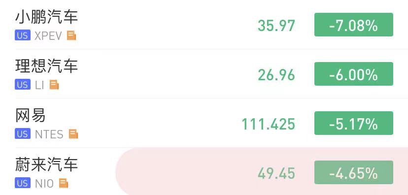 造车新势力跌幅较深,小鹏跌超7%,理想跌6%,蔚来跌近5%。此外,网易跌5.17%。