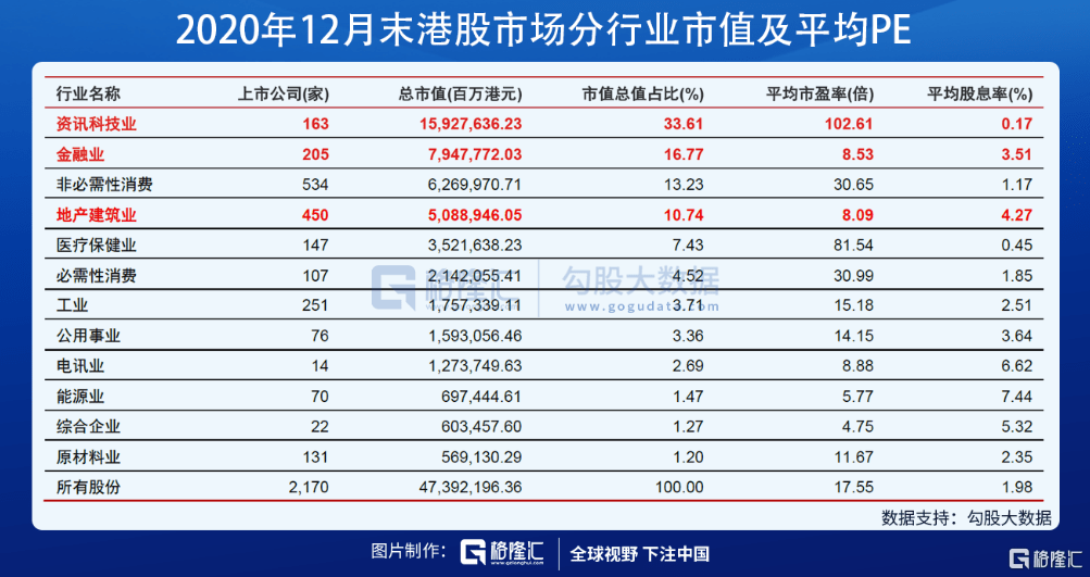 金融地产行业向来是机构资金配置的对象,在港股市场金融和地产分别占总市值的比例是16.77%,10.74%;仅次于科技互联网行业和非必需性消费行业,股息率也是在所有板块里面排名靠前的。