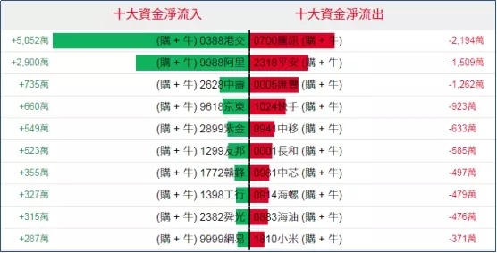 好仓(认购证及牛证)方面,周四港交所、阿里等相关好仓分别录得约5052万、2900万港元资金净流入部署;腾讯、汇丰、平安等则录得超千万港元资金规模净流出。
