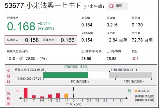 周四恒指相关权证的平均引伸波幅约23.7%,按日有所调降。个股方面,腾讯、汇丰、小米、中移相关认购证的引伸波幅均有调升,港交所、汇丰、小米相关认沽证的引伸波幅有所调降。