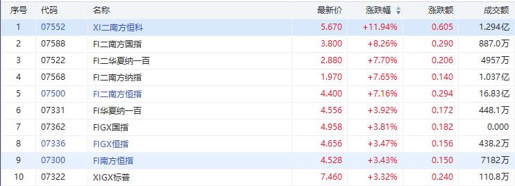 今日恒生科技指数大跌5.71%。其中,南方两倍做多恒科(07226.HK)暴跌11.65%,成交额2.00亿港元;做空两倍南方恒科爆涨11.94%,成交额1.29亿港元。