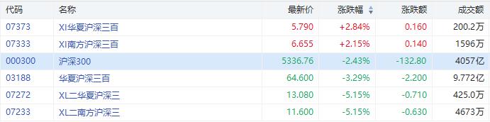 沪深300指数跌2.43%。其中,做空华夏沪深三百、做空南方沪深三百分别涨超2%。