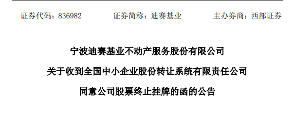 迪赛基业的前身为宁波迪赛房地产销售代理有限公司,于2011年1月6日设立。2015年11月23日,有限公司整体变更设立宁波迪赛基业不动产服务股份有限公司。2016年,迪赛基业于新三板挂牌上市,2020年4月14日,迪赛基业从新三板摘牌,转而筹划赴港上市之路。对其原因,迪赛基业表示一方面是新三板对投资者要求较高,另一方面是新三板交易量及流动性水平较低,难以体现迪赛基业价值,进而影响其以股权或债务方式募集资金。相较而言,港交所作为国际金融市场的主要参与者,不但增強其集资資能力和渠道而且将进一步提升企业形象,从而提升迪赛基业吸引新客户、业务伙伴及战略投资者,获得更多国际投资者以及为公司业务招聘、激励及挽留主要管理人员的能力。