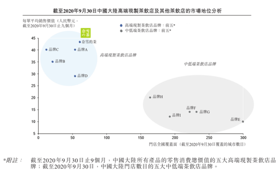 在奈雪招股书中,不难看出品牌A和品牌E分别代表着喜茶与蜜雪冰城。