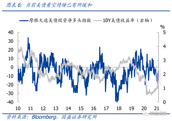 2、美债看空情绪已开始缓和,收益率短期可能继续小幅上行,中期大概率再次下行。