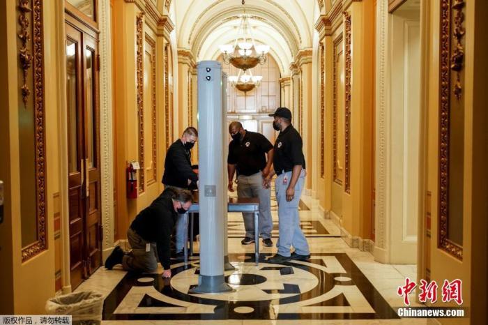 当地时间2021年1月12日,美国首都华盛顿,美国会大厦的安保和修复工作持续进行中。