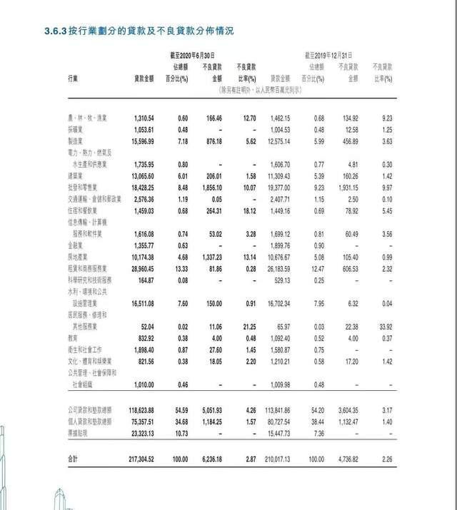 此外,从行业角度看,2020年上半年,江西银行房地产业的不良贷款金额与不良贷款率增长显著。数据显示,2020年初江西银行房地产业不良贷款率仅为0.99%,但到2020年6月30日,江西银行房地产业的不良贷款率已飙升至13.14%。相应地,江西银行房地产业的不良贷款金额也由2020年初的1.05亿,增加至报告期末的13.37亿。