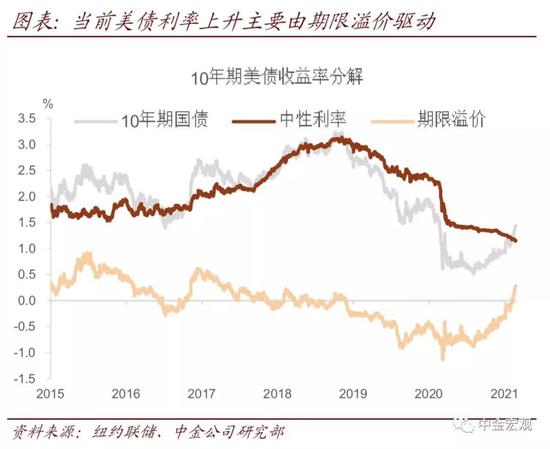 一般而言,期限溢价上升过快不利于股市估值;而中性利率反映了对长期增长的预期,对估值则有支撑作用。从历史上看,美国股市估值和中性利率之间存在显著正相关,和期限溢价之间则负相关(但疫情期间关系有所背离)。我们预计,未来几个月期限溢价可能会继续上升,从而令股市估值承压。另一方面,伴随复苏深化和财政扩张,盈利预期有望得到改善,叠加流动性相对充裕,股市仍存在机会,但是在利率尤其是期限溢价上升的背景下,市场震荡可能加剧。