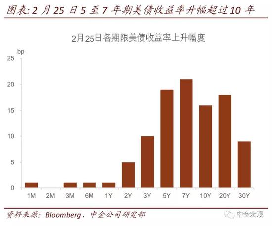 过去几周美债利率(尤其是实际利率)攀升多少反映了市场对基本面好转和财政扩张的预期,而最近几天美债抛售风暴也受到技术面因素的影响。首先,美国财政部620亿美元7年期国债拍卖需求低迷,投标倍数只有2.04倍,创2009年以来新低。2月25日7年期国债收益率升幅比10年期升幅更大。其次,“凸性对冲”(convexity hedging)很可能是这次风暴的助推器。与去年低利率环境下不少房屋拥有者选择再融资从而缩短抵押贷款支持证券(MBS)久期不同,今年在利率趋势性抬升的背景下,再融资减少拉长了MBS投资者证券组合的久期。为对冲久期被动拉长所带来的风险,投资者往往选择出售流动性更高的国债,从而加大国债利率上行压力和波动。