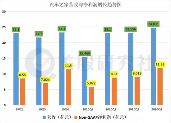 近日,汽车之家公布2020年四季度财报,总营收24.8亿元,同比增长6.6%;全年总营收86.6亿元,同比增长2.8%。四季度调整后净利润11.92亿元,同比增长3.7%,全年调整后净利润36.21亿元,同比增长6.2%。