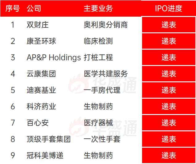 本周 9 家公司递交上市申请 ,主要关注 4 家医药概念企业