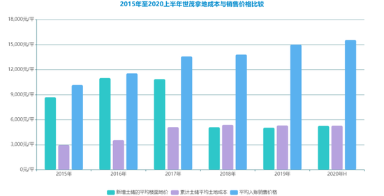 从拿地成本考量这家企业扩张轨迹时会发现,世茂2016年至2017年新增土储的平均楼面地价超过1万元/平方米。