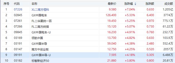 港股市场涨幅前十ETF
