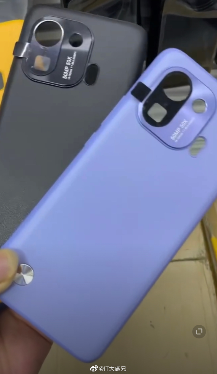 机身的后摄模块部分可见,其内置了三颗摄像头,但将闪光灯组件移至了模块外部。其中,主摄下方安置了一颗方形的镜头组件,基本可以确定为潜望式长焦镜头。