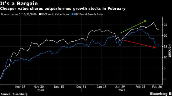 价值型股票2月份增长强劲,MSCI世界价值型指数增长4.5%