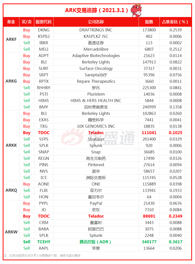 2. 加仓远程医疗服务商Teladoc,两只ETF共买入约4000万美元