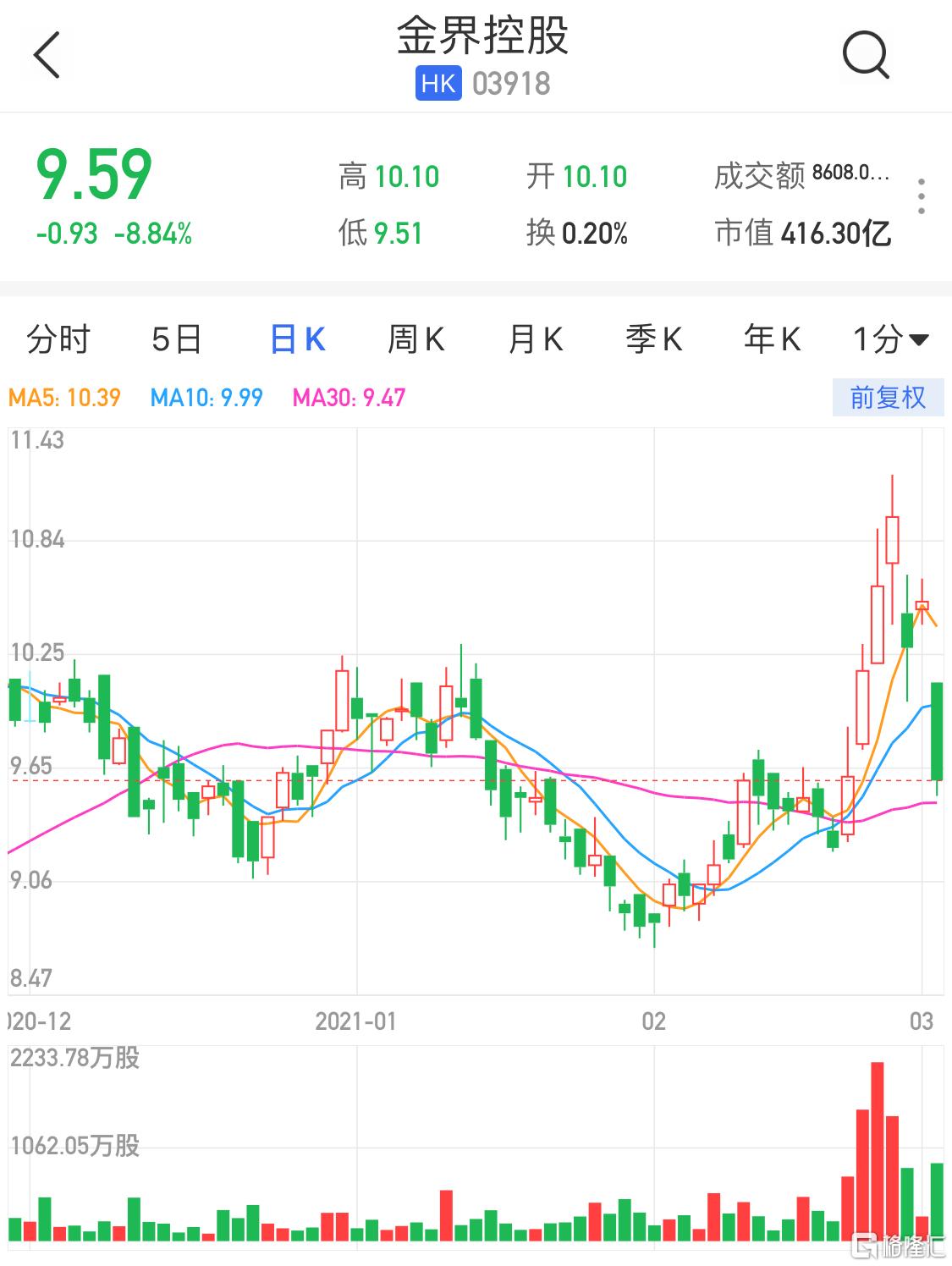 格隆汇3月2日丨金界控股(3918.HK)大幅低开下挫,现跌幅至8.84%,报9.59港元,总市值416.3亿港元。金界控股公布,就柬埔寨卫生部消息,2月份新冠病毒社区传播及在NagaWorld经营场所发现若干新冠病毒个案,公司作为负责任的机构迅速主动暂停业务,以便更彻底地审查已采取的预防及防范措施。计划在抗击和预防新冠病毒中取得若干成绩后重新开业。据悉,2月27日或前后,公司大约3000名雇员接受卫生部检测,有11人随后被发现呈阳性。另外,公司将于3月8日举行董事会议以审批末期业绩。