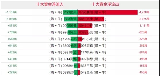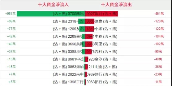 周二北水南下资金单日净流出18.16亿港元。个股方面,国美零售、中国移动单日分别录得约9.8亿、8.6亿北水资金净买入;相反,美团单日录得约11.4亿港元北水资金净流出,腾讯、港交所、中新等亦见北水资金净卖出套现。
