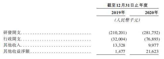 具体来看,科济药业披露的财务数据显示,其目前无任何营收。在过去的2019年、2020年两个财政年度,其研发开支分别为2.10亿、2.82亿元。