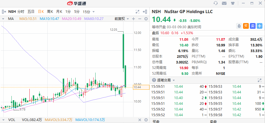 从股价上看,NSH表现较为弱势,连续两天回调,重回10美元区间。
