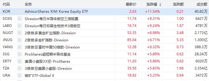 昨日美股低开低走,科技股领跌。从ETF涨幅榜来看,涨幅居前的ETF主要有,每日半导体做空三倍股票的ETF涨9.31%,成交额6421万美元;每日标普生物技术3倍做空ETF涨9.24%,成交额超4781万美元。